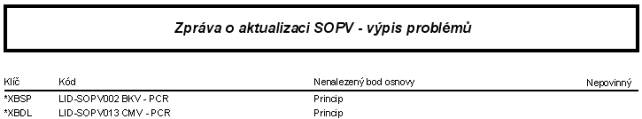 Doporučujeme vám proto před spuštěním aktualizace osnovy SOPV (tlačítko "Aktualizace osnovy SOPV") výsledek tohoto testu pečlivě prověřit a opravit všechny případné podstatné problémy v dokumentech.