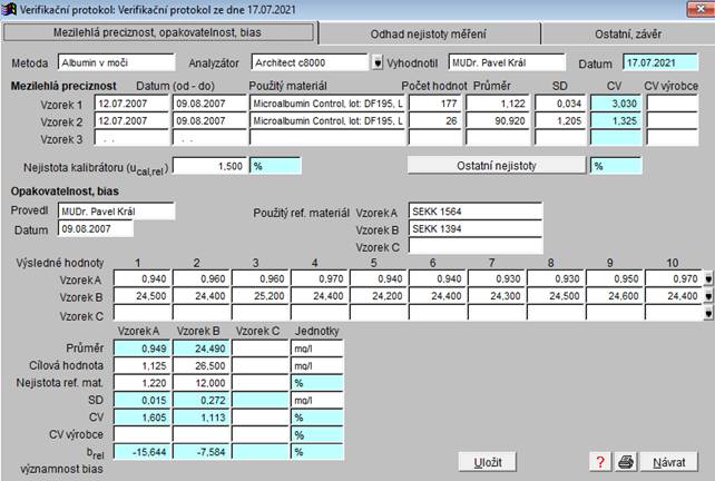 pro validace a verifikace postupů laboratorních vyšetření ve zdravotnických