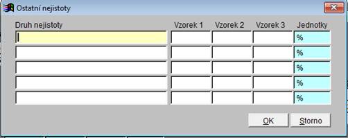 Dialog pro zadání ostatních dílčích nejistot, které mohou ovlivnit