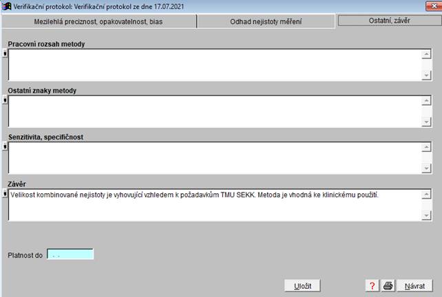 zda metoda vyhovuje zamýšlenému použití. Protokol musí být zkontrolován a
